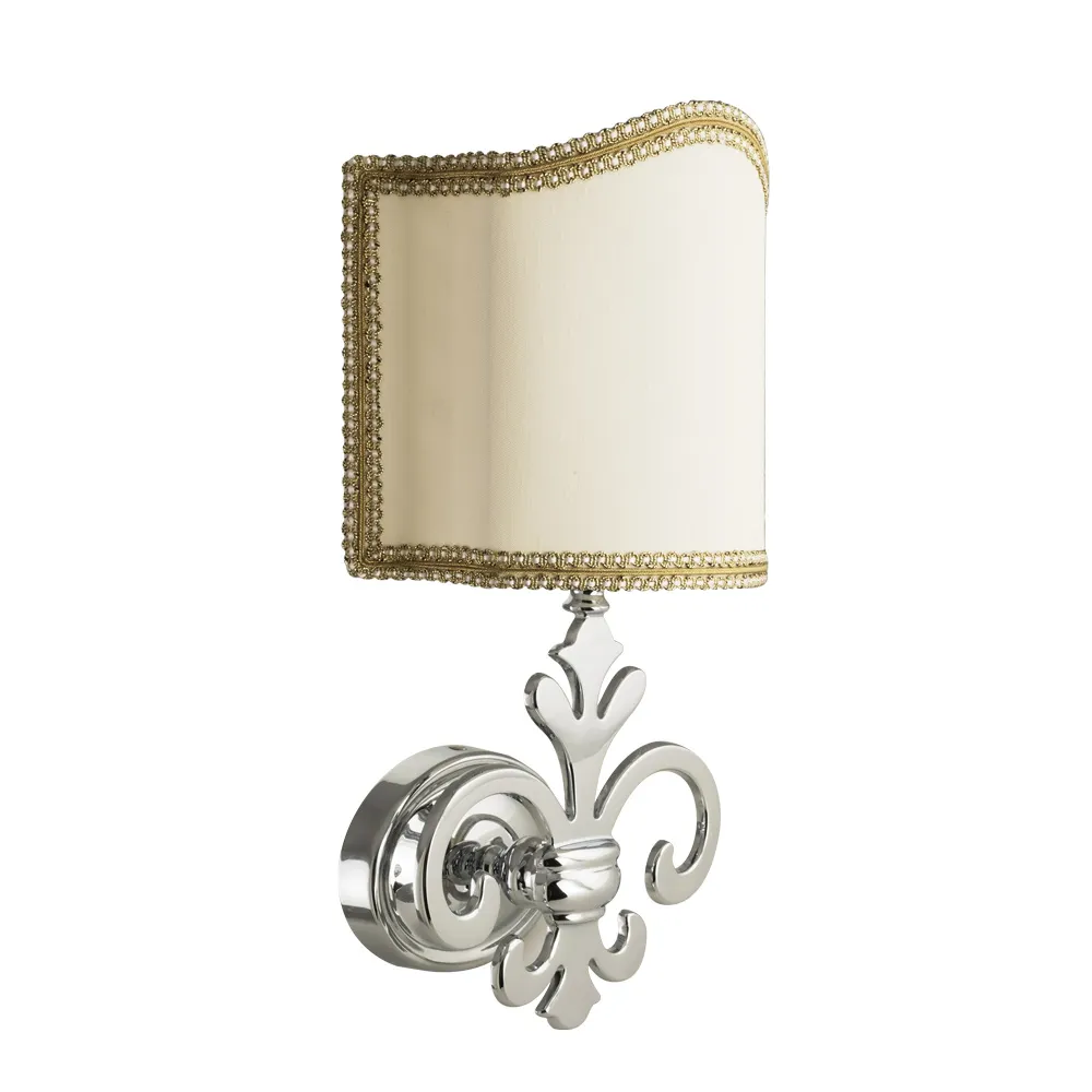 Светильник настенный серии MIRELLA бренда MIGLIORE — это красивый светильник в классическом стиле. Необычное основание светильника в сочетании с тканевым абажуром украсит интерьер ванной комнаты или любого другого помещения. Изделие выполнено из латуни и имеет высококачественное хромо-никелиевое покрытие, которое при правильном уходе надолго сохранит свой блеск. Рекомендуется использовать чистящее средство бренда MIGLIORE для смесителей и аксессуаров с хромированным покрытием.