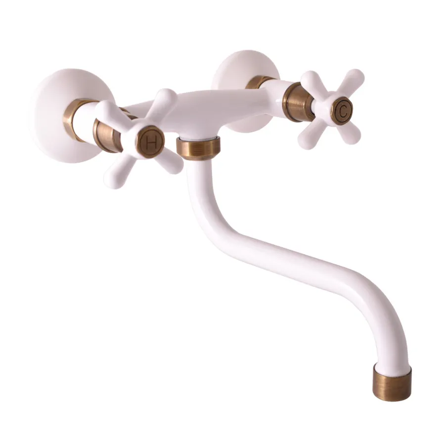 MORAVA RETRO - смеситель кухонный настенный, ЦВЕТ БЕЛЫЙ/БРОНЗА арт-MK101.5/21BSM