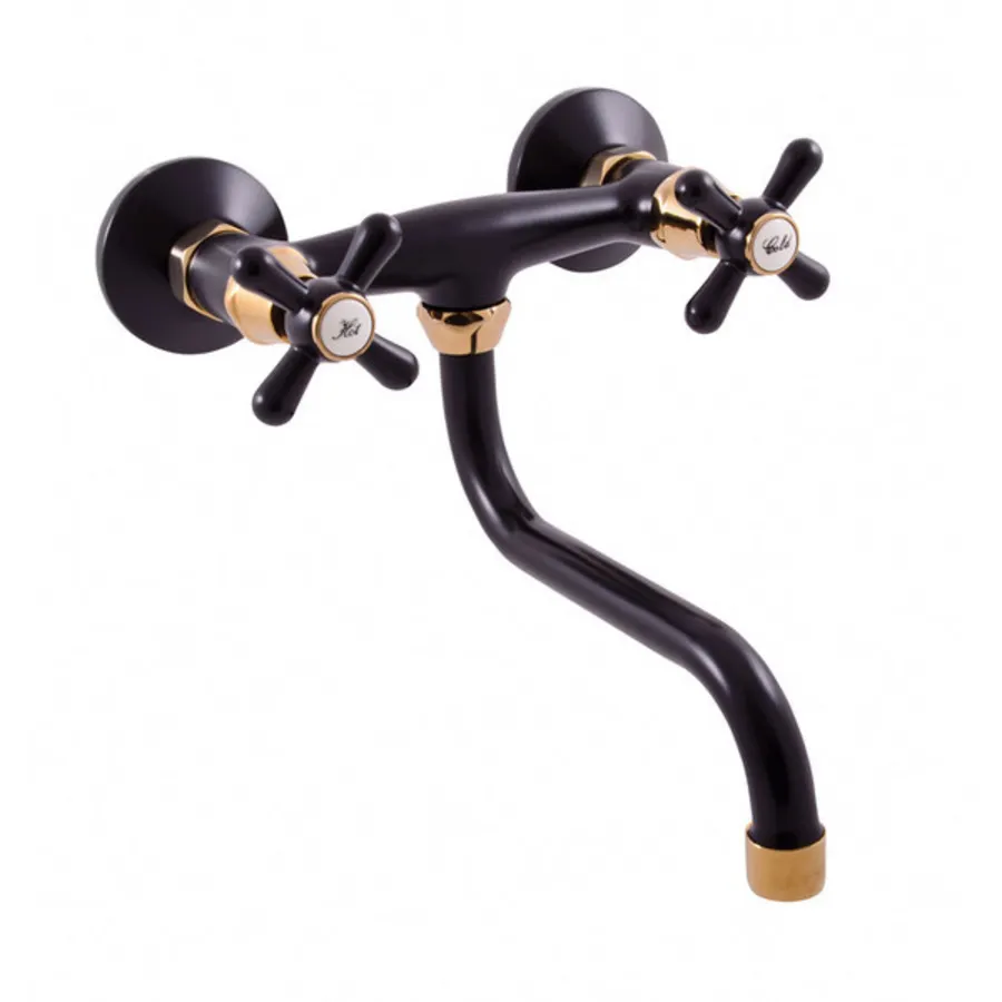 MORAVA RETRO - смеситель кухонный настенный, ЦВЕТ ЧЕРНЫЙ МАТОВЫЙ/ЗОЛОТО арт-MK101.5/21CMATZ