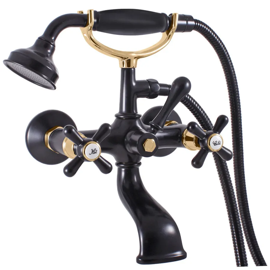 MORAVA RETRO - смеситель классический для ванны с душем, ЦВЕТ ЧЕРНЫЙ МАТОВЫЙ/ЗОЛОТО арт-MK159.5/2CMATZ