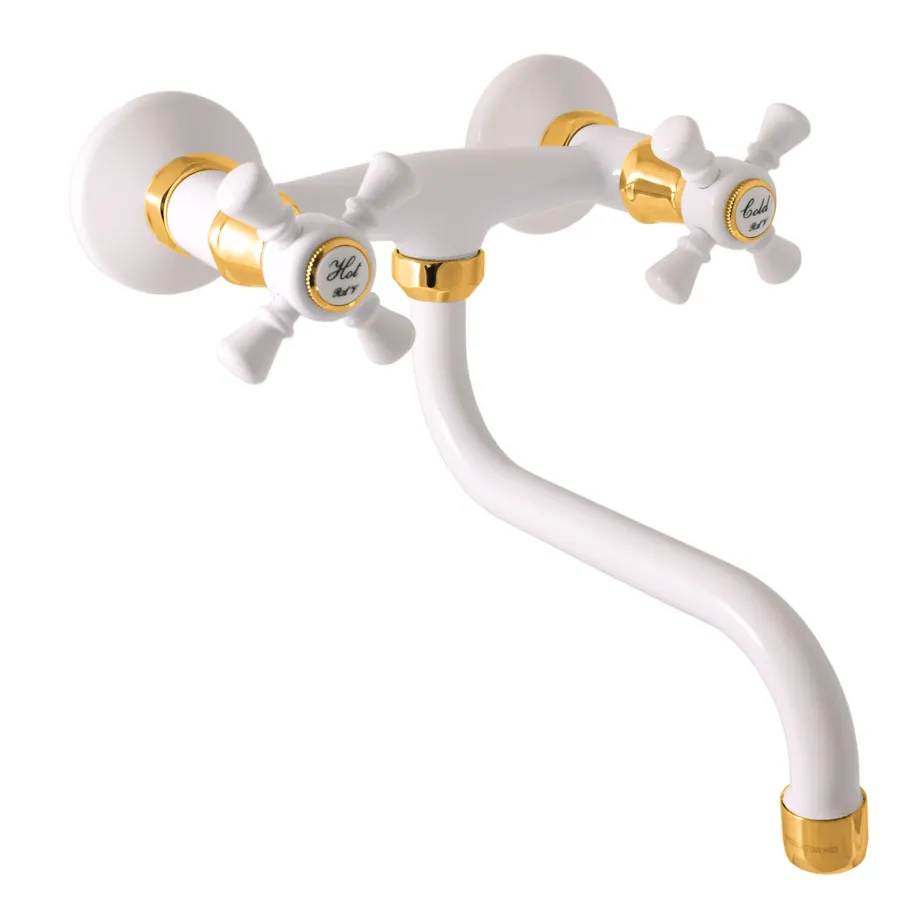 MORAVA RETRO - смеситель кухонный настенный, ЦВЕТ БЕЛЫЙ ГЛЯНЦЕВЫЙ/ЗОЛОТО арт-MK301.5/21BZ