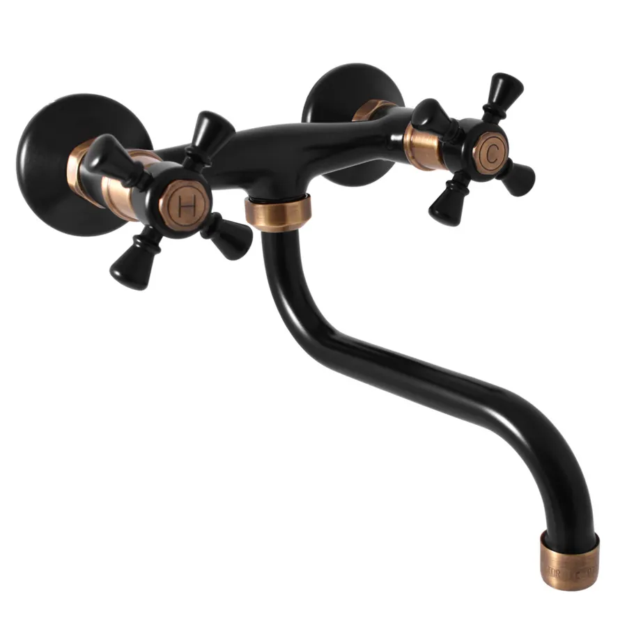 MORAVA RETRO - смеситель кухонный настенный, ЦВЕТ ЧЕРНЫЙ МАТОВЫЙ/БРОНЗА арт-MK301.5/21CMATSM