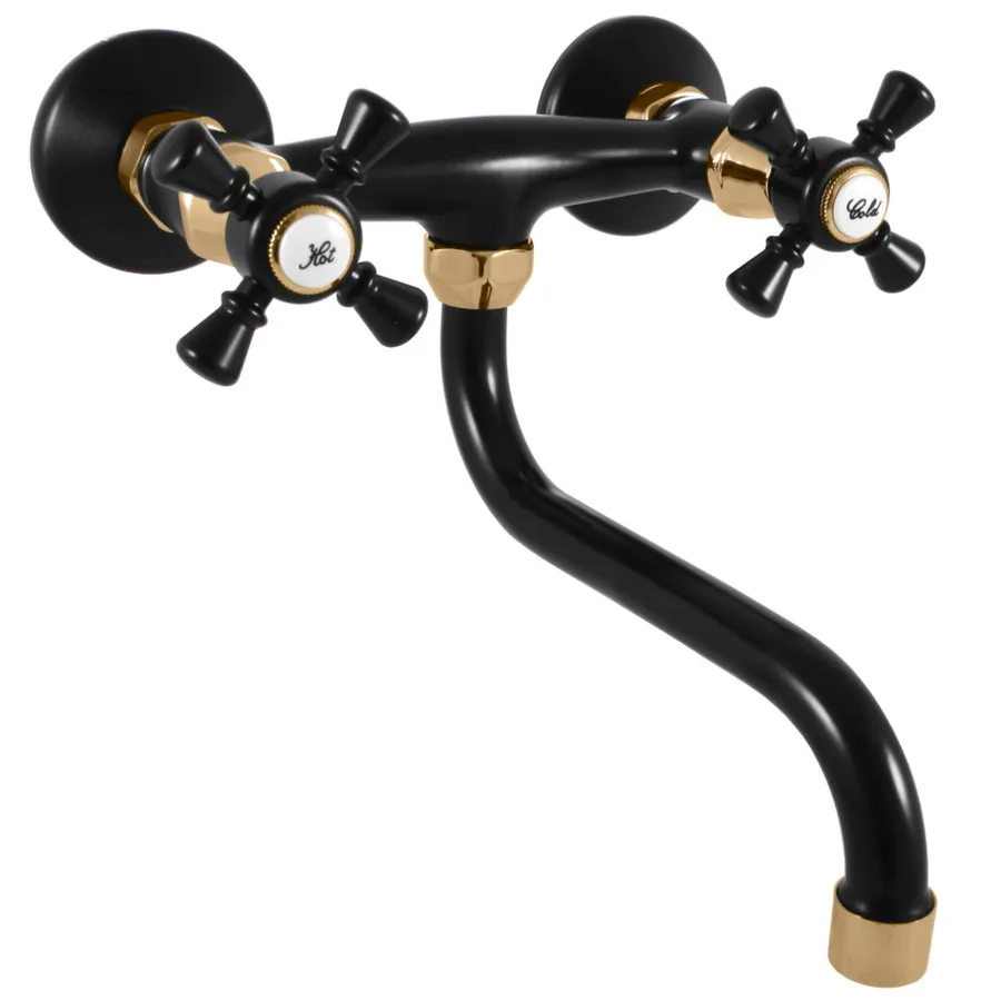 MORAVA RETRO - смеситель кухонный настенный, ЦВЕТ ЧЕРНЫЙ МАТОВЫЙ/ЗОЛОТО арт-MK301.5/21CMATZ