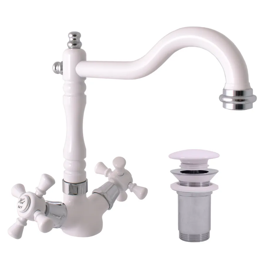 MORAVA RETRO - смеситель для умывальника, CLICK-CLACK, БЕЛЫЙ ГЛЯНЦЕВЫЙ/ХРОМ арт-MK321.5/8BC