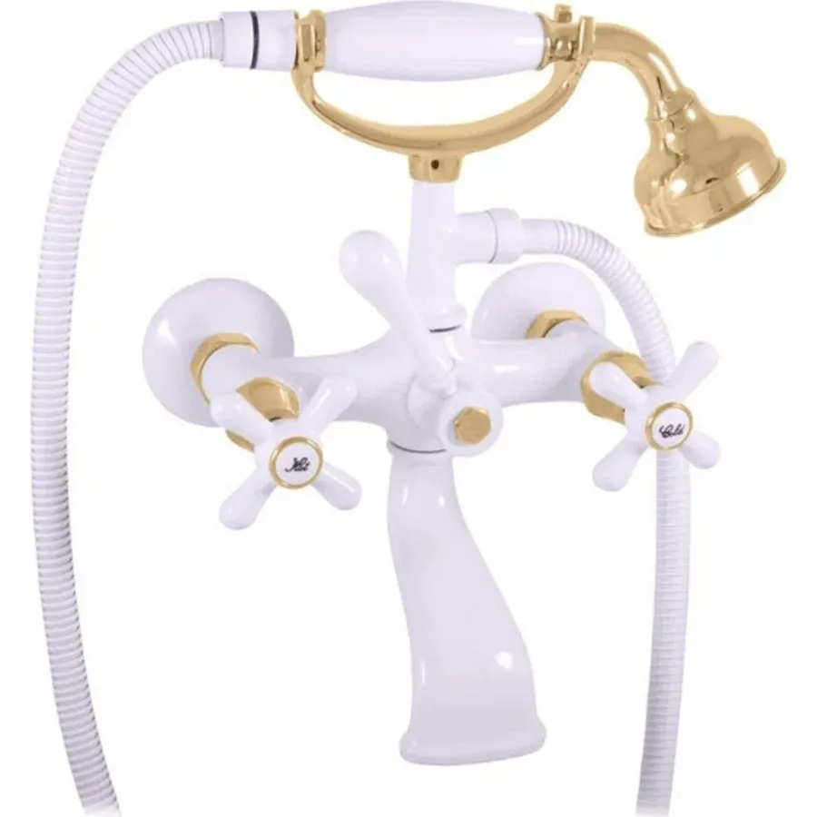 MORAVA RETRO - смеситель классический для ванны с душем, ЦВЕТ БЕЛЫЙ ГЛЯНЦЕВЫЙ/ЗОЛОТО арт-MK359.5/2BZ