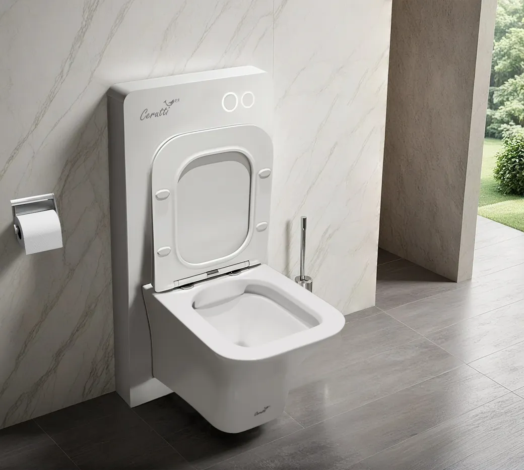 Модуль - инсталляция из белого стекла Ceruttispa, приставная, для подвесных унитазов арт-G111W