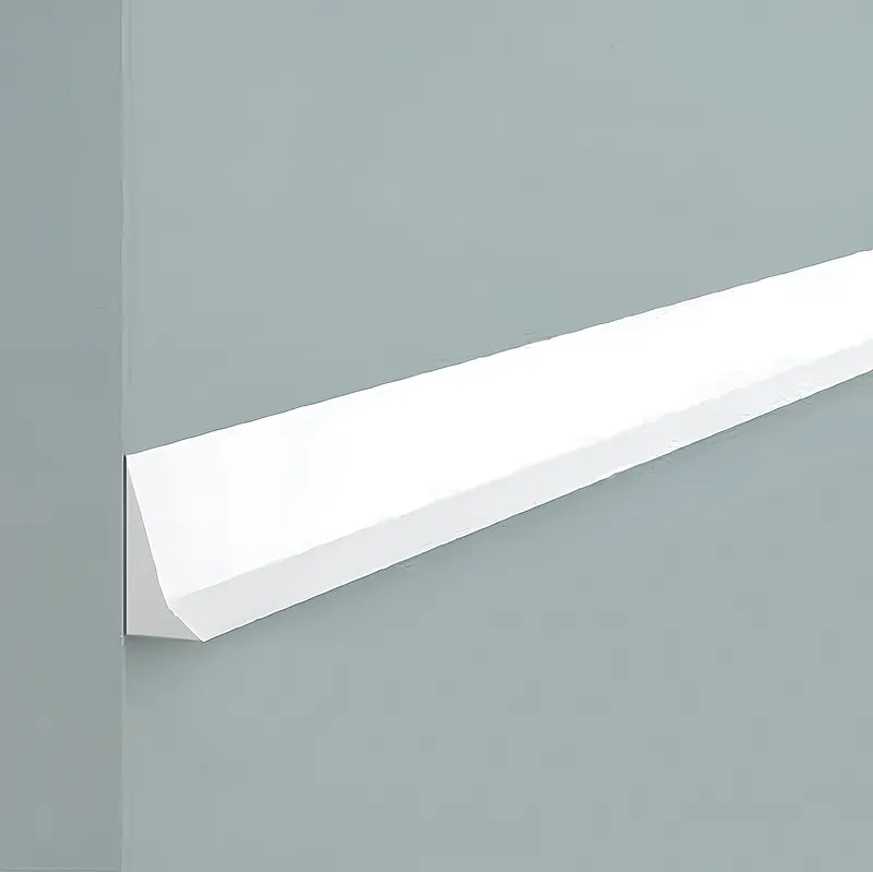 - Белый молдинг под покраску позволяет легко адаптировать отделку под любой интерьерный стиль, обеспечивая универсальность использования.