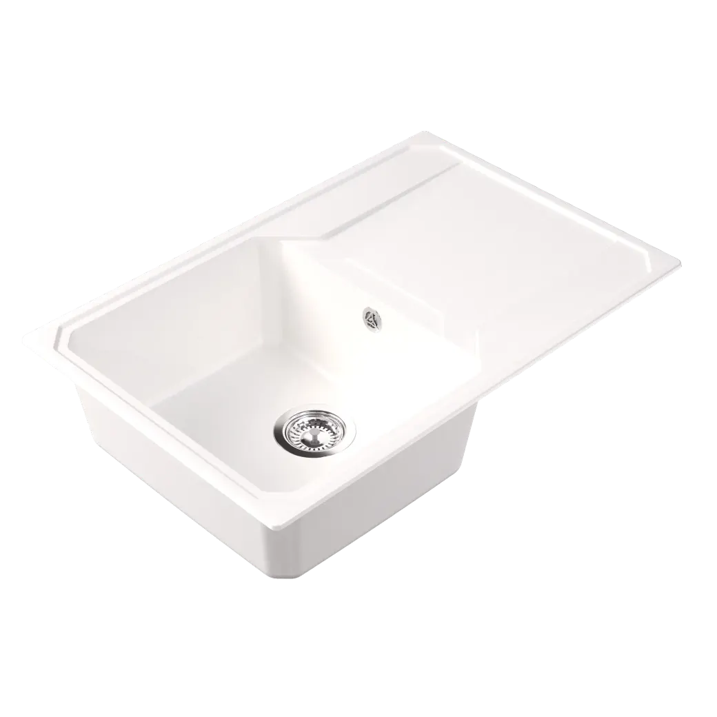 Кухонный блок, мм – 500 Габариты мойки, мм – 760х500х197 Глубина чаши, мм – 180 Материал – литьевой мрамор Тип установки – на столешницу (врезная) Реверсивность – да Дополнительные отверстия под аксессуары – да Гарантия – 2 года