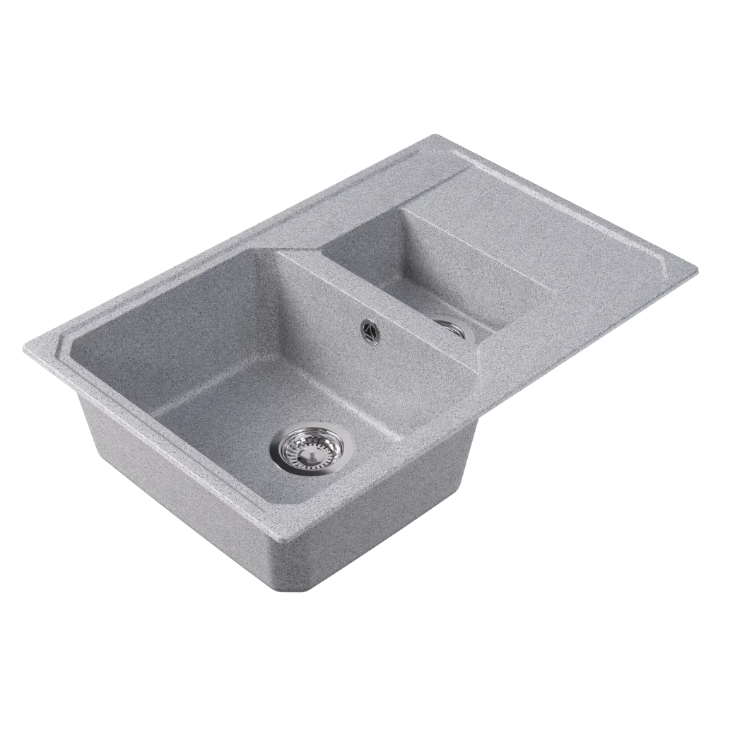 Кухонный блок, мм – 600 Габариты мойки, мм – 760х500х197 Глубина чаши, мм – 180/120 Материал – литьевой мрамор Тип установки – на столешницу (врезная) Реверсивность – да Дополнительные отверстия под аксессуары – да Гарантия – 2 года