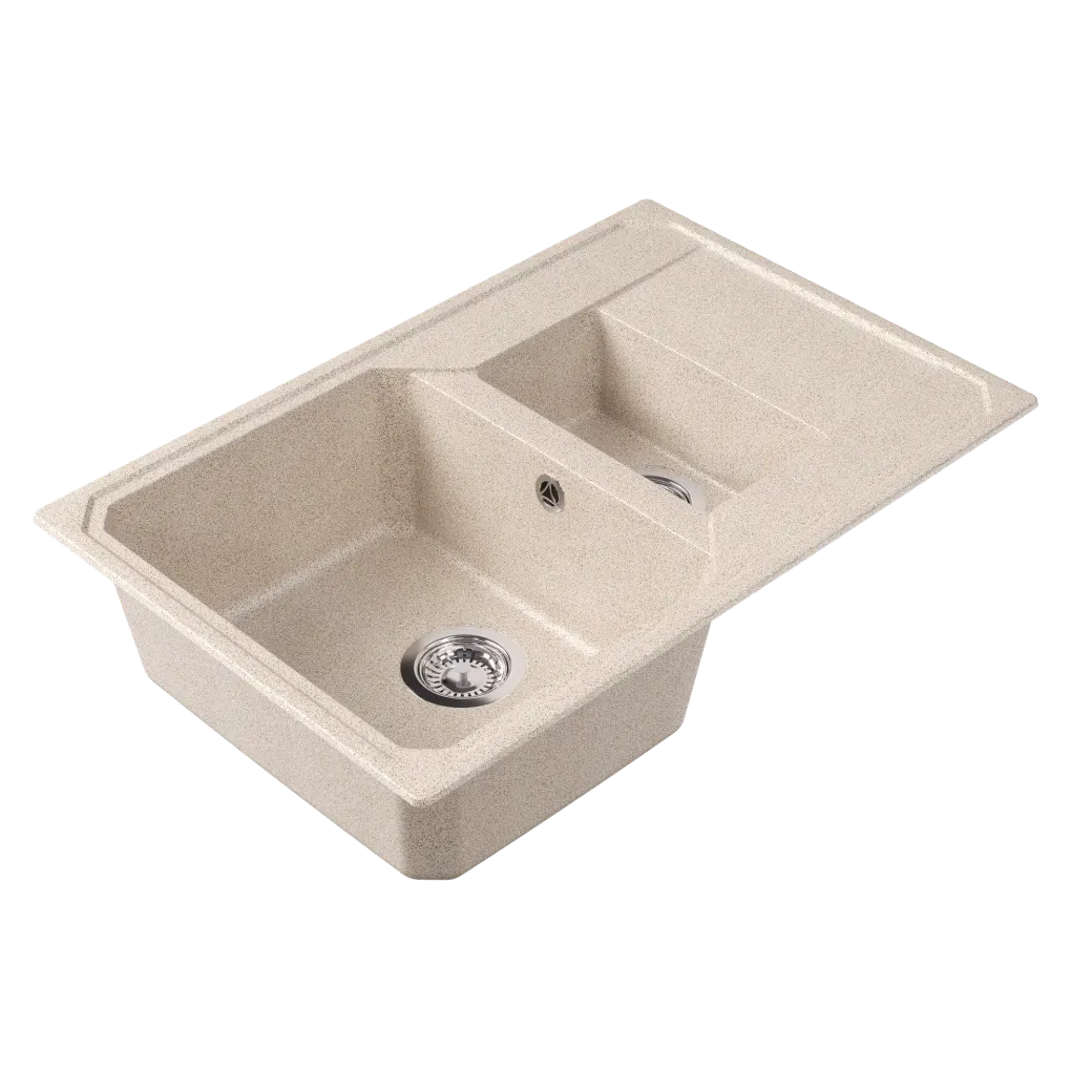 Кухонный блок, мм – 600 Габариты мойки, мм – 760х500х197 Глубина чаши, мм – 180/120 Материал – литьевой мрамор Тип установки – на столешницу (врезная) Реверсивность – да Дополнительные отверстия под аксессуары – да Гарантия – 2 года