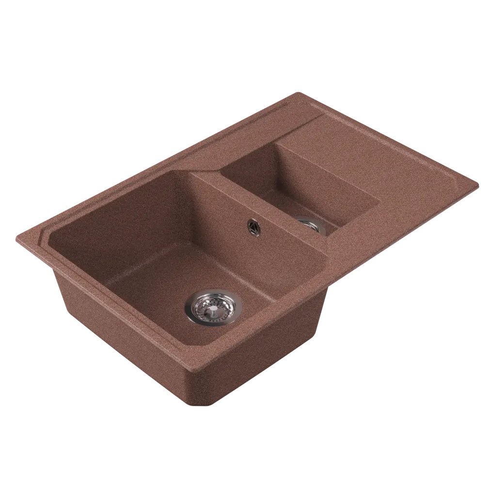 Кухонный блок, мм – 600 Габариты мойки, мм – 760х500х197 Глубина чаши, мм – 180/120 Материал – литьевой мрамор Тип установки – на столешницу (врезная) Реверсивность – да Дополнительные отверстия под аксессуары – да Гарантия – 2 года