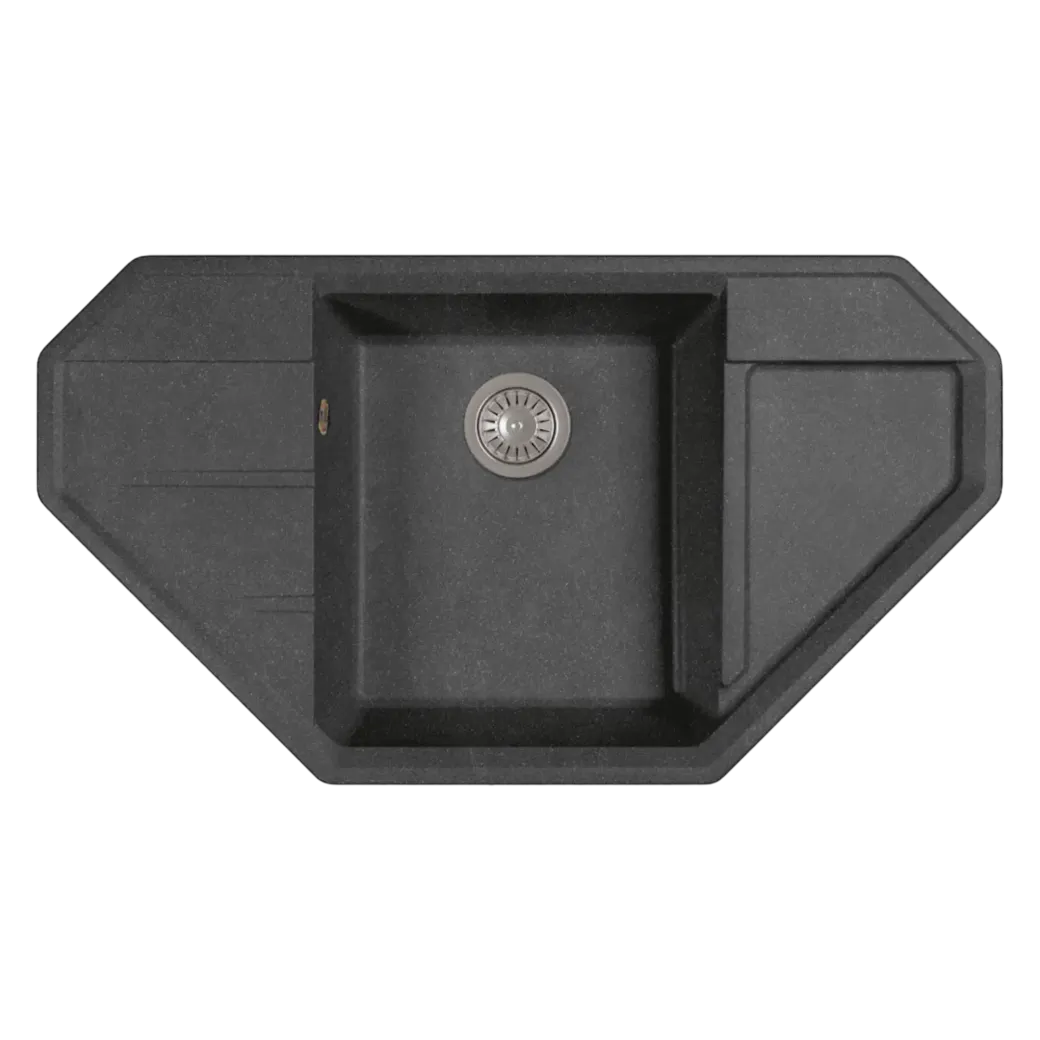 Угловой блок, мм – 900х900 Габариты мойки, мм – 910х500х197 Глубина чаши, мм – 180 Материал – литьевой мрамор Тип установки – на столешницу (врезная) Реверсивность – нет Дополнительные отверстия под аксессуары – да Гарантия – 2 года