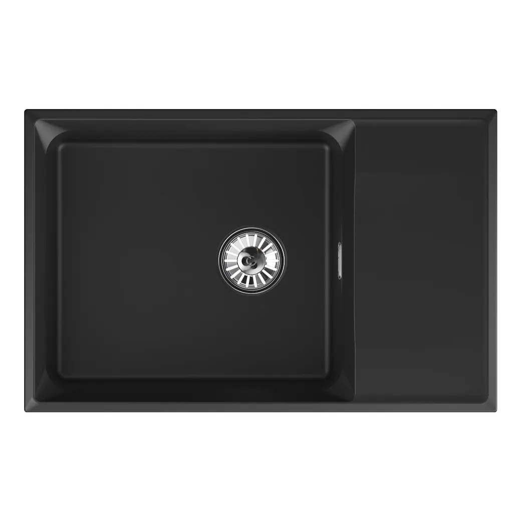 Мойка кухонная Point Этна 78 черный — это идеальное сочетание современного дизайна и функциональности. Изготовленная из прочного кварца, данная мойка станет центральным элементом вашей кухни. Благодаря прямоугольной форме и ширине 780 мм, она обеспечивает комфорт при мытье посуды и продуктов.