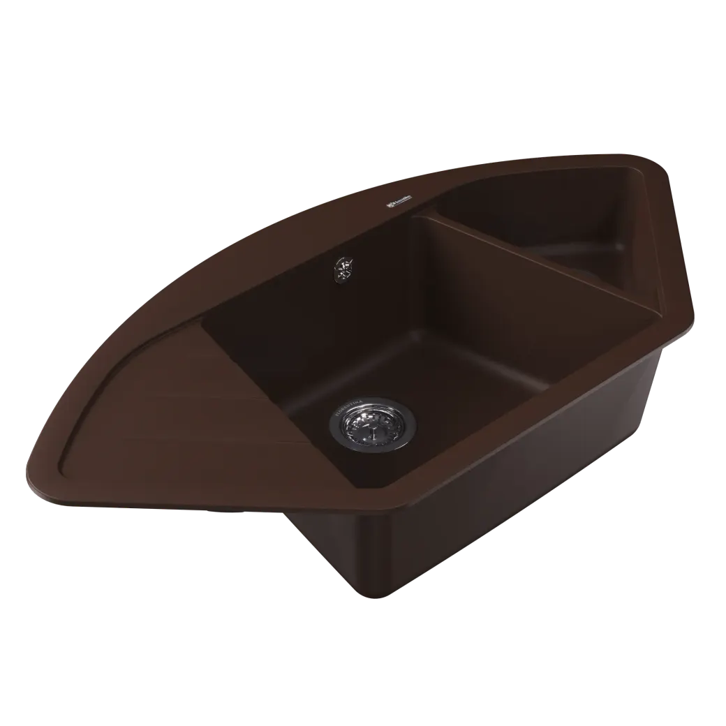 • Угловая мойка с дополнительной малой чашей и крылом Универсальные размеры мойки позволяют устанавливать ее в угловые блоки практически всех стандартных размеров. Варианты размеров угловых блоков приведены в чертеже