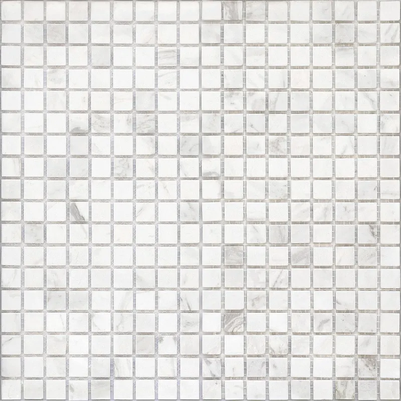 - Мозаика размером 30,5x30,5 см с чипом 15х15 мм на сетке.