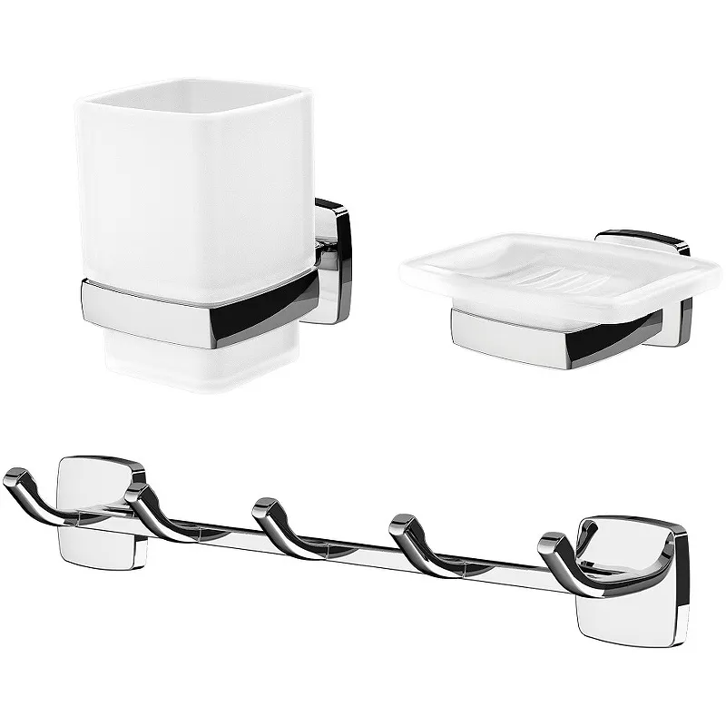 - Многофункциональность: Включает мыльницу, стакан для зубных щеток и вешалку для полотенец, обеспечивая полный комплект для вашей ванной комнаты.