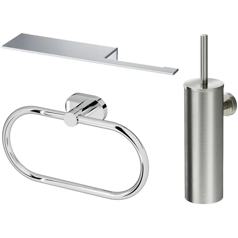 - Хромовое покрытие аксессуаров для ванной обеспечивает стильный вид и простоту в уходе.