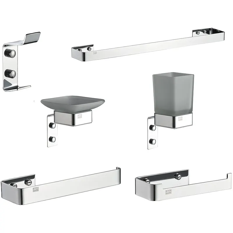 Набор аксессуаров для ванной Boch Mann CR-D01 BM9644.Характеристики:Держатель туалетной бумаги: Цвет: хром. Материал: нержавеющая сталь. Габариты (ШxВxД): 173х30х68 мм. Монтаж: настенный. Полотенцедержатель: Цвет: хром. Материал: нержавеющая сталь. Габариты (ШxВxД): 234х30х74 мм. Монтаж: настенный. Полотенцедержатель: Цвет: хром. Материал: нержавеющая сталь. Габариты (ШxВxД): 588х30х43 мм. Монтаж: настенный. Стакан для зубных щеток: Цвет держателя: хром. Материал держателя: нержавеющая сталь. Материал стакана: стекло матовое. Габариты (ШxВxД): 65х160х95 мм. Монтаж: настенный. Мыльница: Цвет держателя: хром. Материал держателя: нержавеющая сталь. Материал мыльницы: стекло матовое. Габариты (ШxВxД): 106х83х115 мм. Монтаж: настенный. Двойной крючок: Цвет: хром. Материал: нержавеющая сталь. Габариты (ШxВxД): 30х103х50 мм. Монтаж: настенный. В комплекте поставки: Держатель туалетной бумаги. Полотенцедержатель - 2 шт. Стакан для зубных щеток. Мыльница. Двойной крючок.