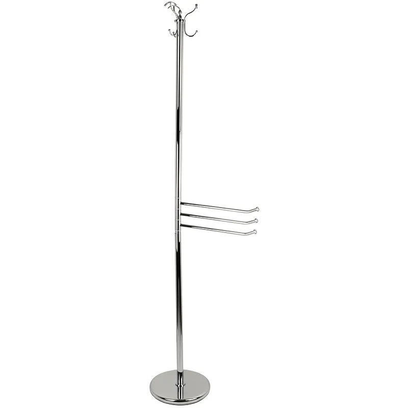 Напольная стойка Migliore Mirella 17261.Характеристики: Цвет: хром. Материал: латунь. Размер (ШхГхВ): 55х23х185,5 см. С тройным поворотным полотенцедержателем и крючками. Монтаж: напольный. В комплекте поставки: Напольная стойка.