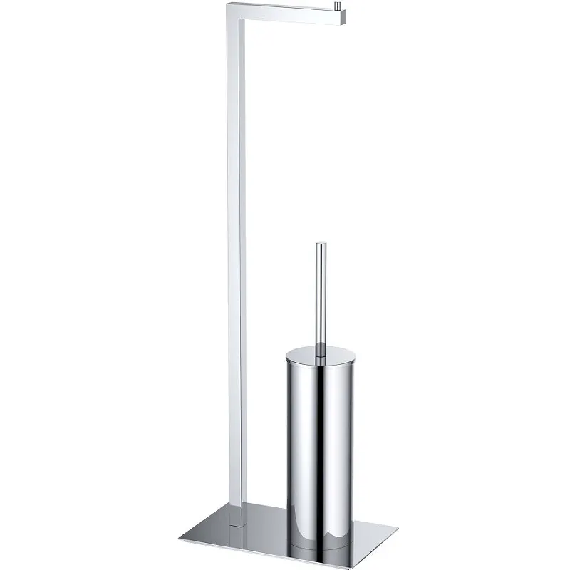 Напольная стойка Schein 9301CH.Характеристики: Цвет: хром. Материал: нержавеющая сталь. Размеры (ШхВхД): 250х720х160 мм. Монтаж: напольный. В комплекте поставки: Напольная стойка. Держатель туалетной бумаги. Ершик для унитаза. Колба для ершика.