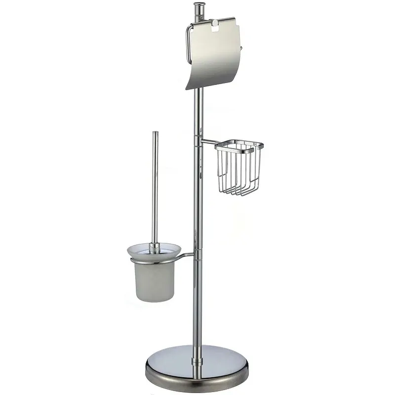 Напольная стойка Viko V-466.Характеристики: Цвет: хром. Материал: нержавеющая сталь, стекло. Монтаж: напольный. В комплекте поставки: Стойка. Держатель туалетной бумаги. Держатель освежителя воздуха. Ершик для унитаза.