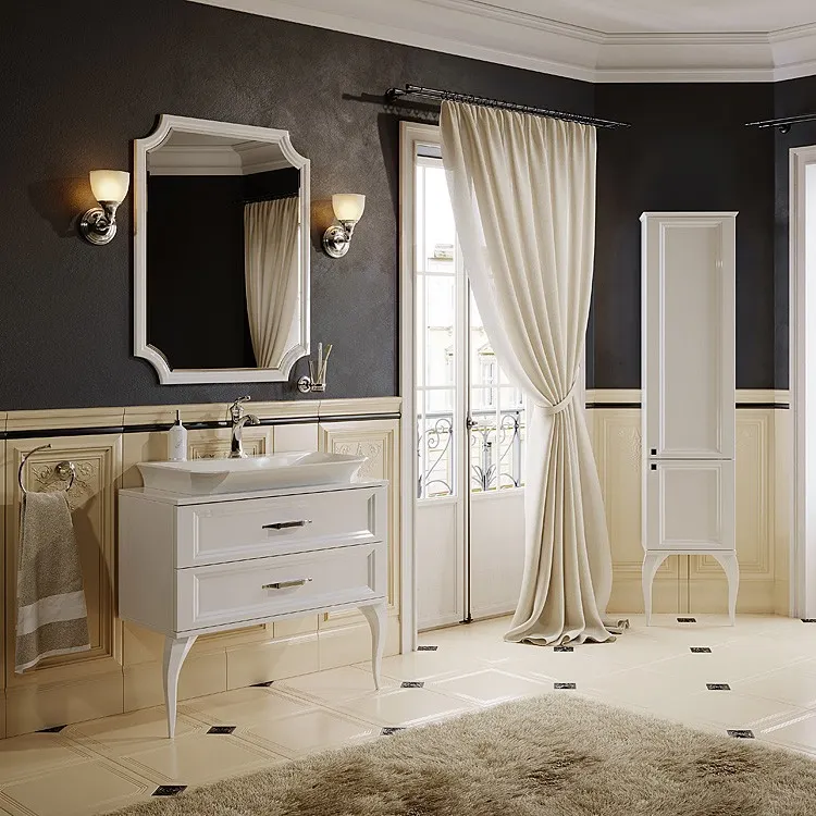 Напольная тумба с двумя ящиками в белом глянцевом цвете с умывальником из литьевого мрамора арт-LAD0108W