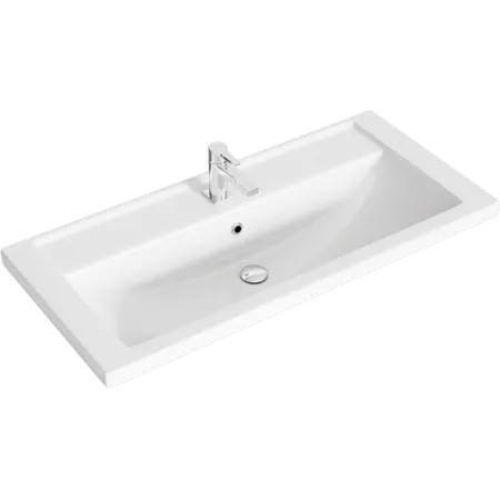 Напольная тумба в белом глянцевом цвете с тремя ящиками с умывальником арт-MAN01103