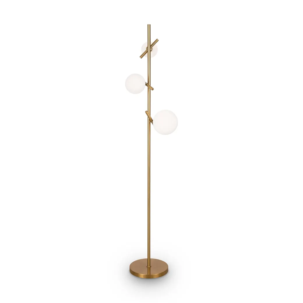 Материал арматуры — рифленый металл, цвет — латунь. Плафоны-сферы из белого матового стекла для мягкого заливающего света. Воздушный образ плафонов, строгие тонкие линии арматуры придадут интерьеру изящество и легкость. Высота подвесов регулируется. Источник света — лампы с цоколем G9.