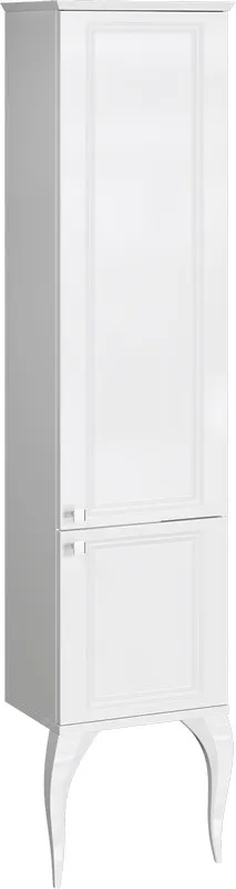 Напольный универсальный левый/правый пенал с двумя дверьми в белом глянцевом цвете,внутри стеклянные полочки тонированные в цвете графит арт-LAD0504W