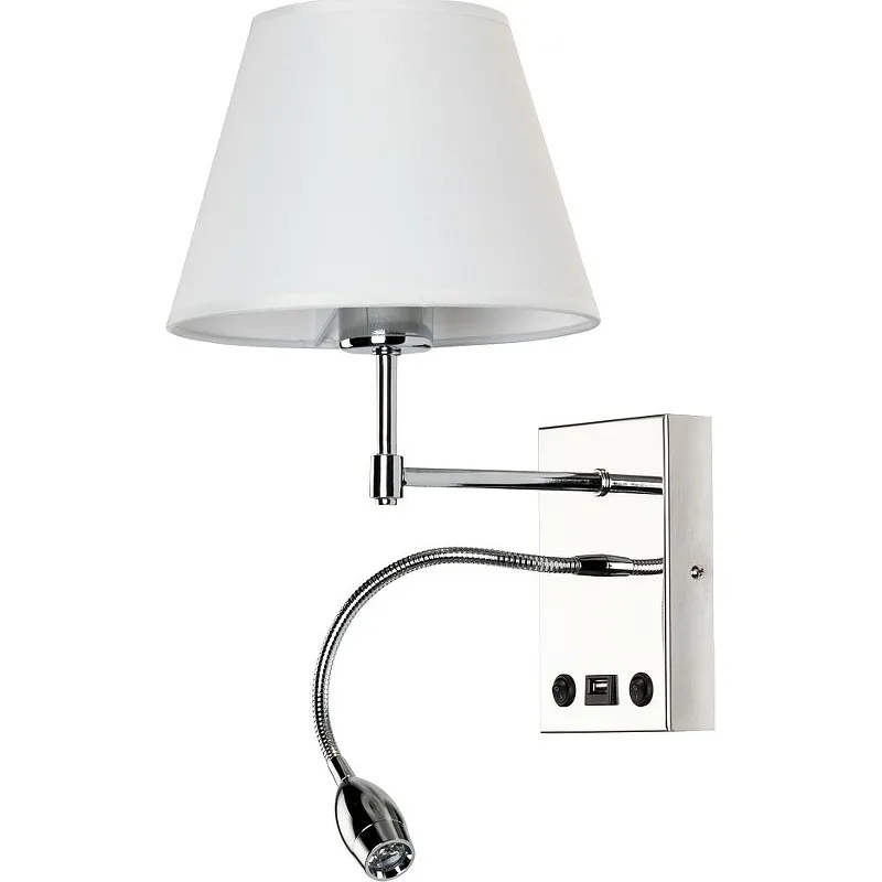 Настенный светильник Artelamp Elba A2581AP-2CC — это стильное и функциональное решение для вашего интерьера. Изготовленный в Италии, он сочетает в себе элегантность неоклассического дизайна и современные технологии. Благодаря хромированному металлу и белому текстильному плафону, светильник идеально подходит для спальни, создавая комфортное освещение с теплым светом (менее 3500 К).
