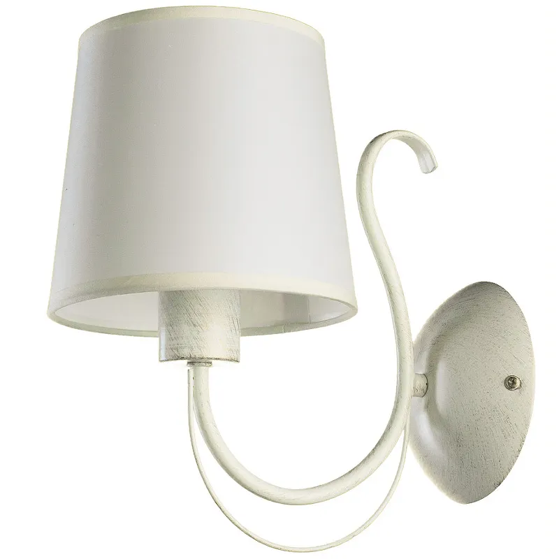 Настенный светильник Artelamp Orlean A9310AP-1WG Белый с золотом – это идеальное решение для создания уютной атмосферы в интерьере. Благодаря своему элегантному стилю кантри, данный светильник станет отличным акцентом в спальне или гостиной. Комбинированный цвет арматуры и плафона – белый с золотом – добавляет изысканности и утонченности в любой дизайн.