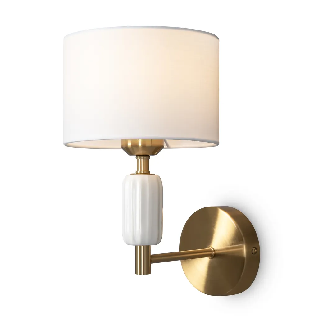Серия Ceram сочетает керамический рельефный белый декор с тканевыми абажурами, обеспечивающими мягкое рассеивание света. Тканевые абажуры Ceram идеальны как для дома, так и для сферы HoReCa. Серия включает настенное бра, подвесной светильник и настольную лампу. Арматура — металл в латунном цвете. Комбинация керамики, ткани и латуни впишется в любой дизайн интерьера.