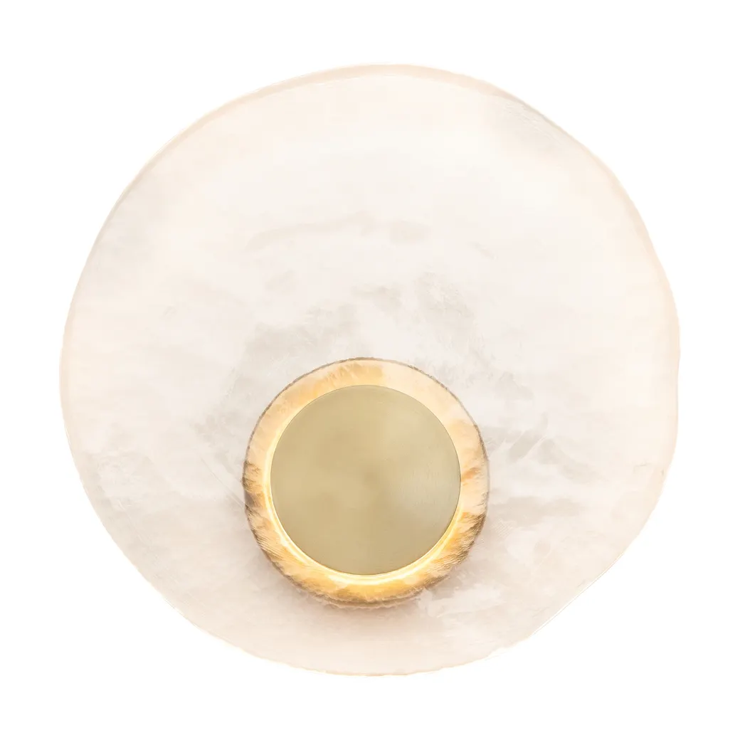 Материал арматуры — металл, цвет — латунь. Настенные светильники оснащены LED-источником света с цветовой температурой 2700К. Уникальное стекло ручного производства обеспечивает равномерное свечение всей поверхности плафона. Для достижения наилучшего светового эффекта рекомендуется использовать в сочетании с основными источниками света.