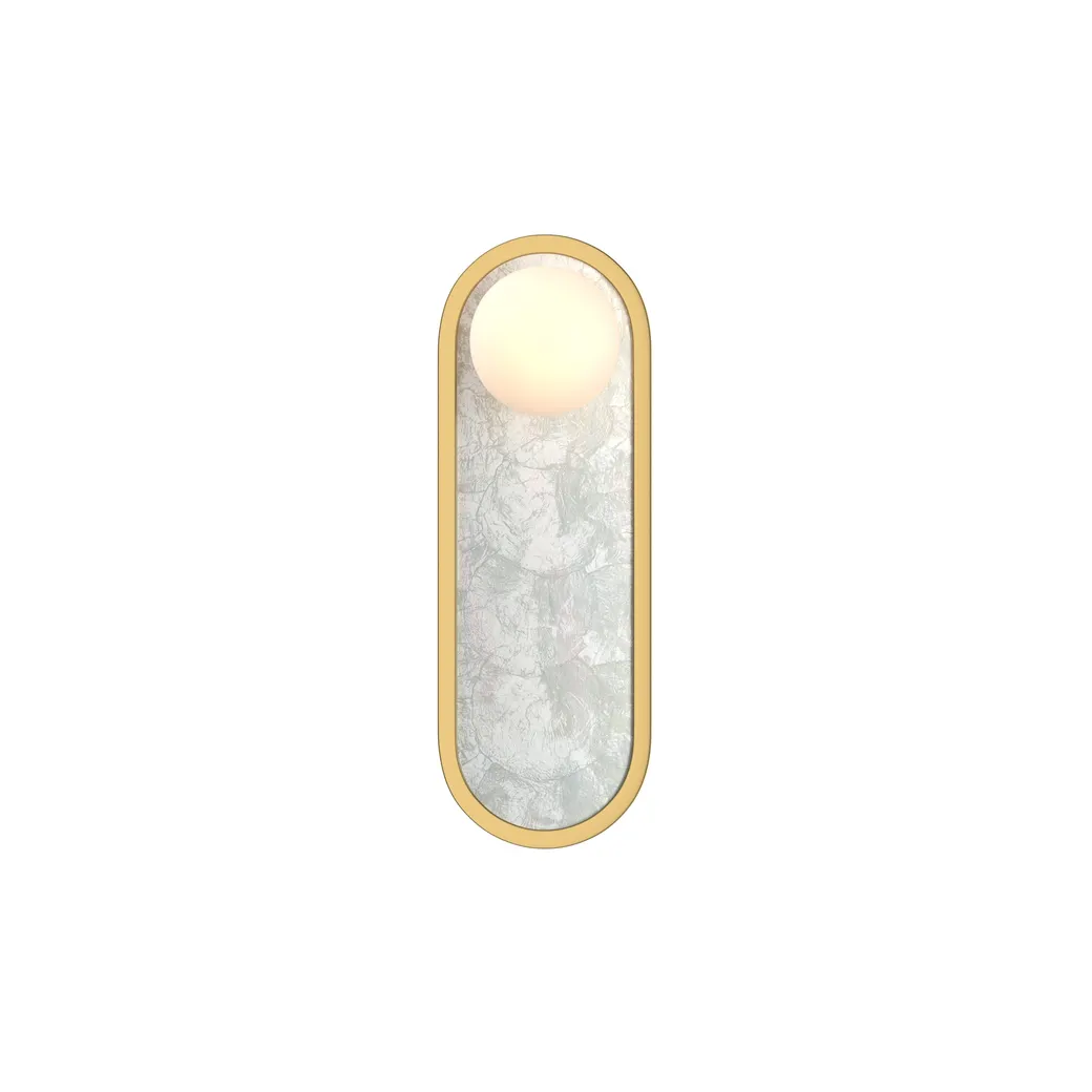 В серии представлены настенные светильники двух размеров и двух поколений. Декоративная мозаика из натурального перламутра играет нежнейшими бликами. Контраст текстур — переливы перламутра и матовая поверхность металла цвета латуни. LED-лента под акриловым рассеивателем создаёт ореол на стене. Предусмотрено трехступенчатое переключение температуры света через вкл-выкл (2700-3000-4000K), позволяющее создавать желаемую атмосферу. Эффектно светильники смотрятся и в комбинации друг с другом.
