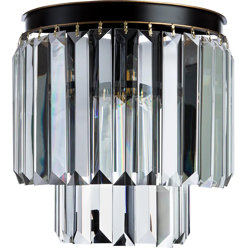 - Элегантный дизайн и современные материалы: Настенный светильник выполнен из металла и хрусталя, что придаёт интерьеру роскошный вид.