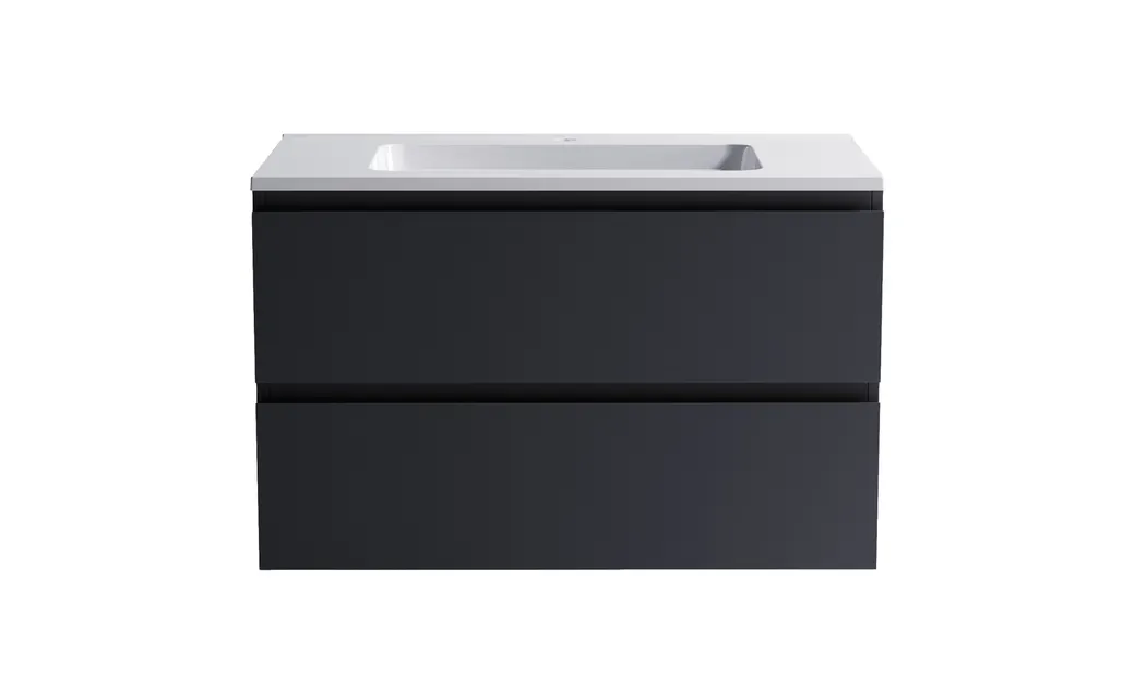 Нижний шкаф Альфа 90 с 2 ящиками темно-серый (RAL7024 матовый) + Раковина "Альфа 90" арт-3060007ral7024+04010008