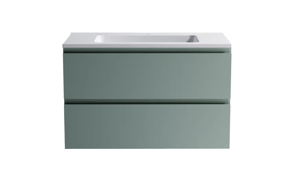 Нижний шкаф Альфа 90 с 2 ящиками зеленый (NCS S 3005-B80G матовый) + Раковина "Альфа 90" арт-3060007ncss3005-b80g+04010008