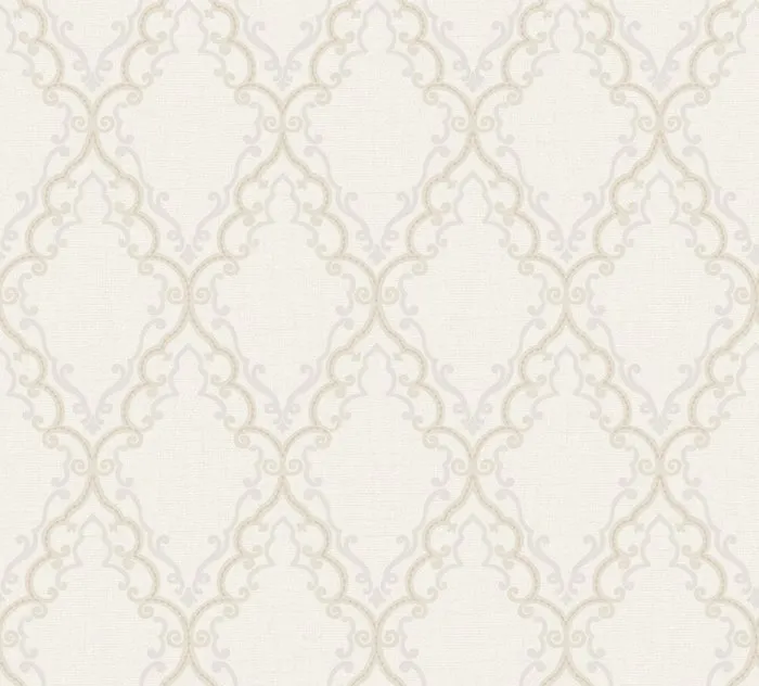 Обои Ada Wall Anka арт-1610-1 представляют собой виниловые обои на бумажной основе, предназначенные для использования в жилых помещениях, таких как гостиные и спальни. Их светлый цвет и классический рисунок в виде вензелей и ромбов создают атмосферу пространства и света.