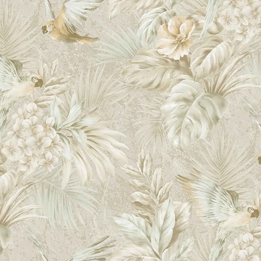Обои Ada Wall арт-9905-2 из коллекции Tropikano представляют собой виниловые обои на бумажной основе с рисунком, изображающим птиц и растения. Они подходят для декорирования стен в различных помещениях, таких как гостиные, спальни и кухни, благодаря спокойному бежевому цвету.