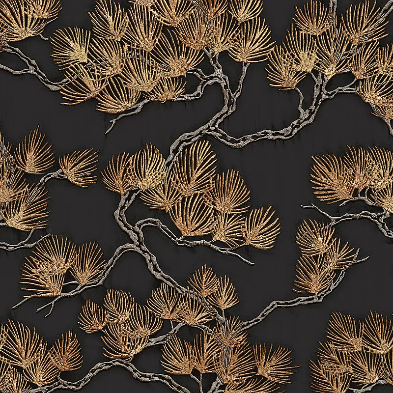 - Эффектный дизайн обоев: Черный и золотой цвета с рисунком деревьев придают помещению стильный и современный вид.