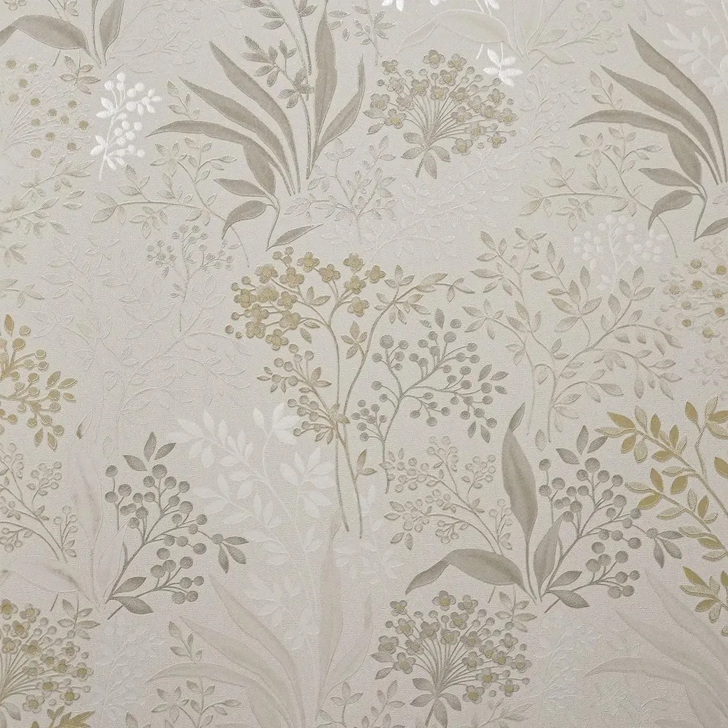 - Цветы бежево-серого цвета на обоях создают элегантный и стильный дизайн, который легко впишется в любой интерьер.