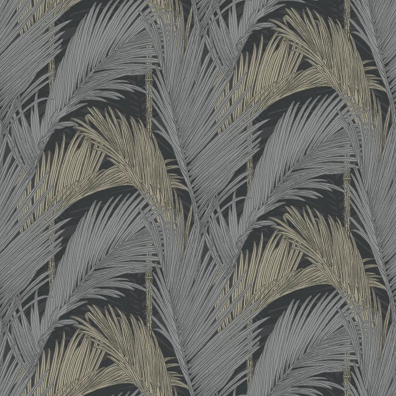 Обои Andrea Grifoni Palazzo Peterhof 7002-6 Флизелин (1,06*10,05) Черный/Серый, Листья