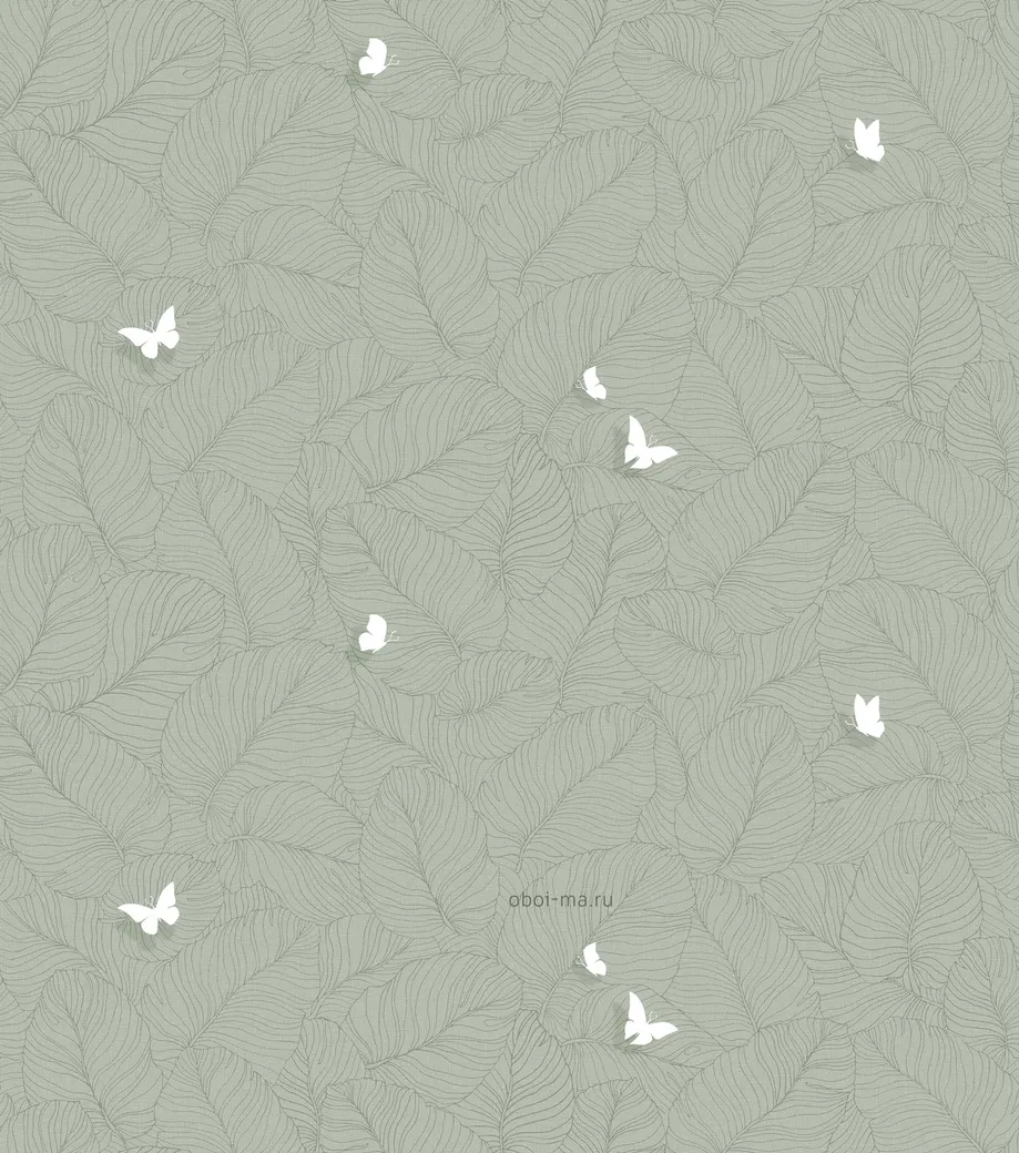 Обои Andrea Rossi Berggi арт-54453-7 — это виниловые обои на флизелиновой основе, произведенные в Южной Корее. Они имеют зеленый цвет с рисунком, включающим бабочек, насекомых и растительные элементы, что создает уютную атмосферу для различных интерьеров.