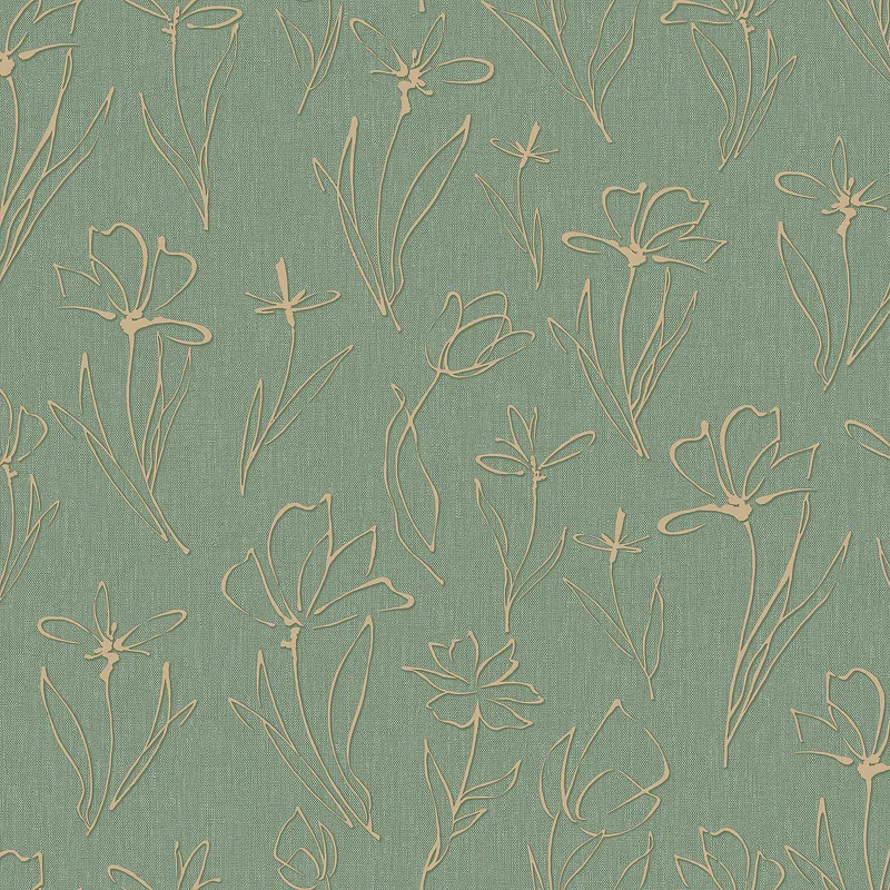- Винил на флизелине (1,06*10,05) Зеленый/Золото, Цветы