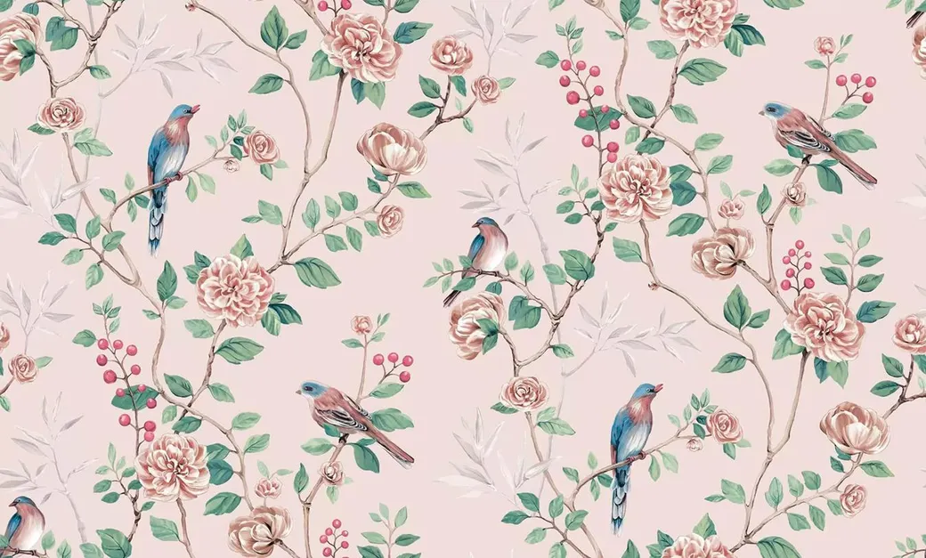 - Рисунок с цветами и птицами добавляет интерьеру изысканность и неповторимость.