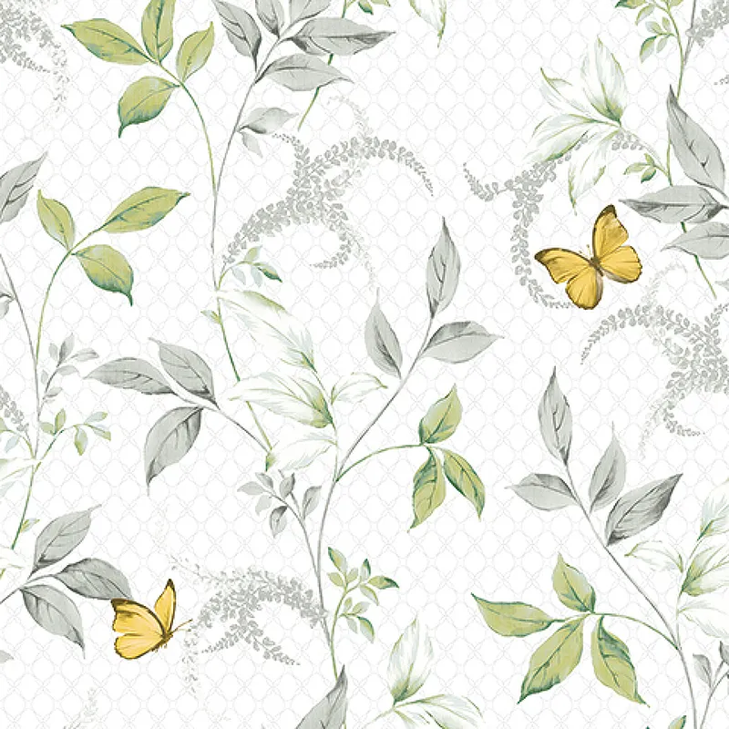 Обои Andrea Rossi Gallinara 54316-1 Винил на флизелине (1,06*10,05) Белый/Зеленый/Желтый, Бабочки/Листья