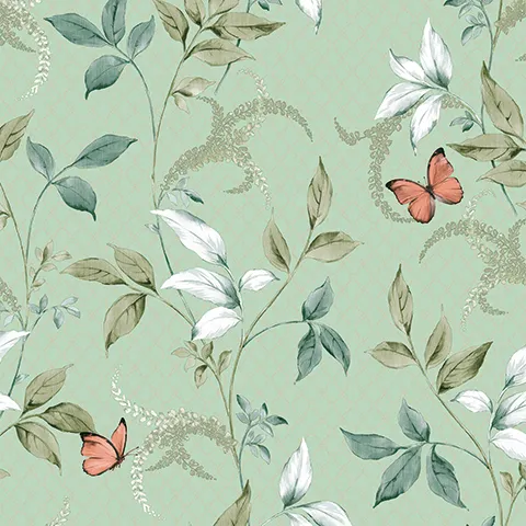 Обои Andrea Rossi Gallinara 54316-5 Винил на флизелине (1,06*10,05) Зеленый, Бабочки/Листья