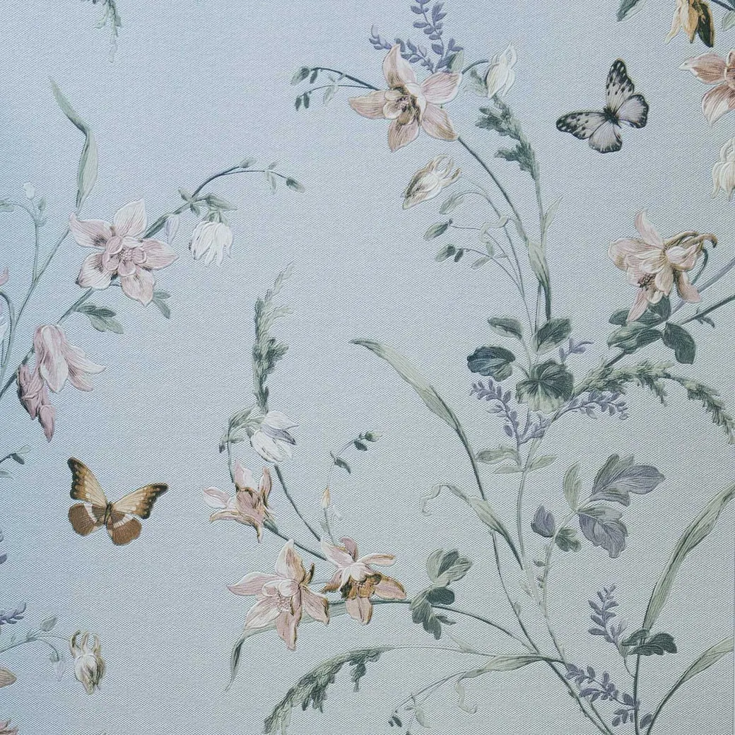 Обои Andrea Rossi Gavi 54373-5 Винил на флизелине (1,06*10) Голубой/Зеленый/Розовый, Бабочки/Цветы