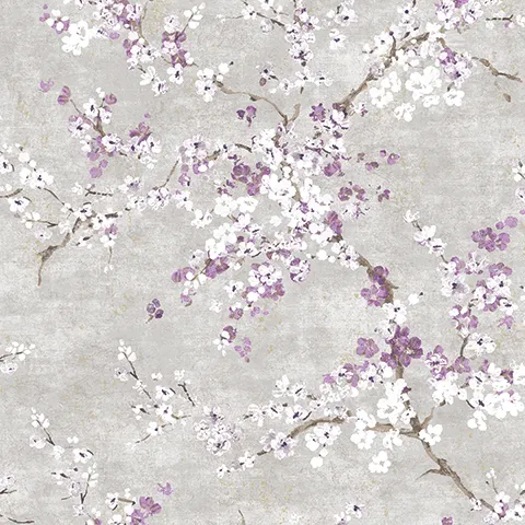 Обои Andrea Rossi Nisida 54320-1 Винил на флизелине (1,06*10) Серый/Сиреневый, Цветы