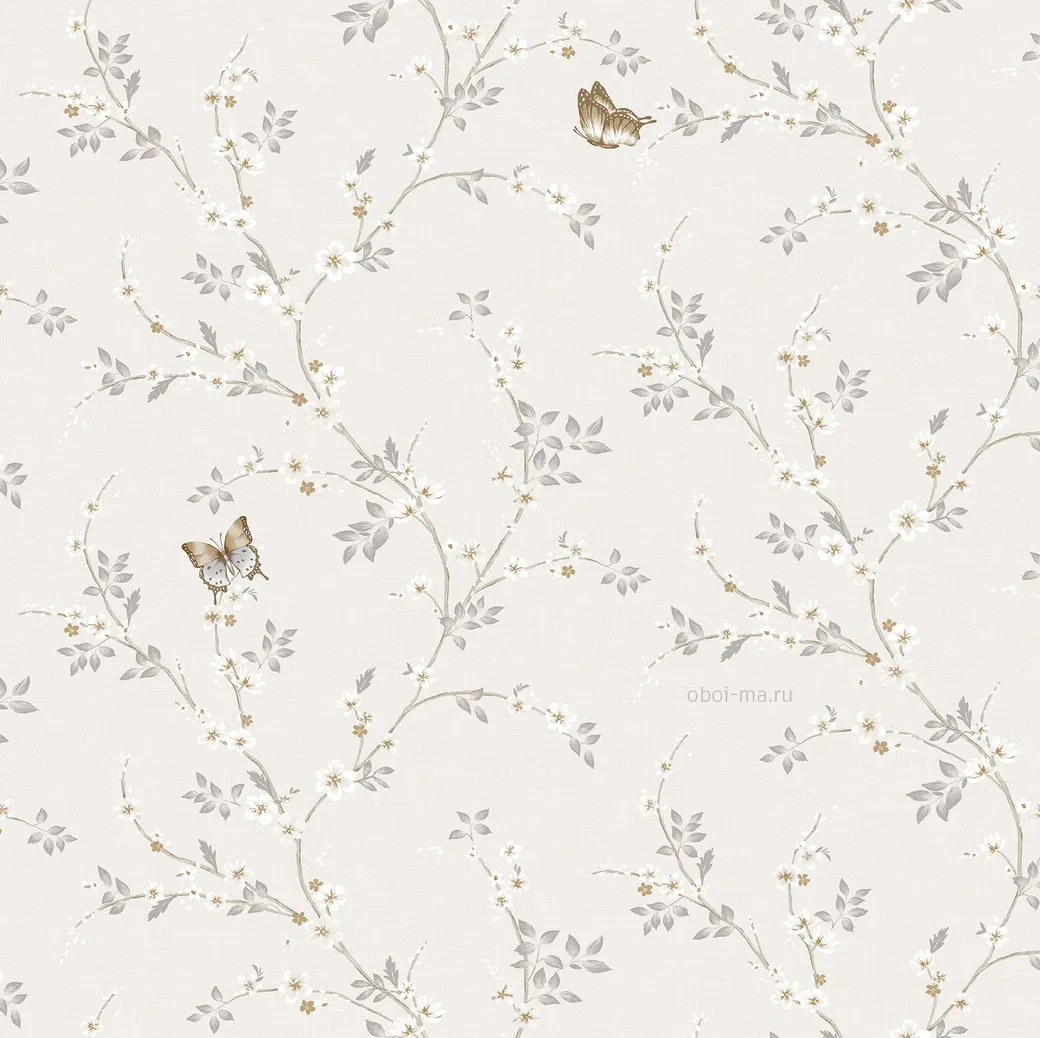 Обои Andrea Rossi Spectrum Box арт-54460-1 — это виниловые обои на флизелиновой основе, произведенные в Южной Корее. Подходят для оформления интерьеров кухонь и спален, сочетают светлые оттенки белого и серого с мелкими рисунками бабочек и цветов.
